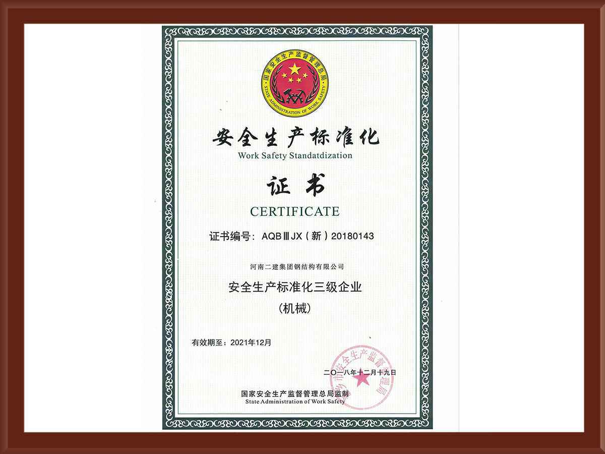 安全生产三级企业证书